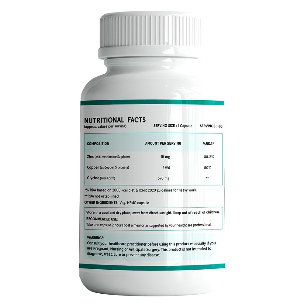 - Dual Action Formula: Combining Zinc Glycinate and Copper Gluconate for a synergistic effect, supporting not just immune function but also providing essential antioxidant support.