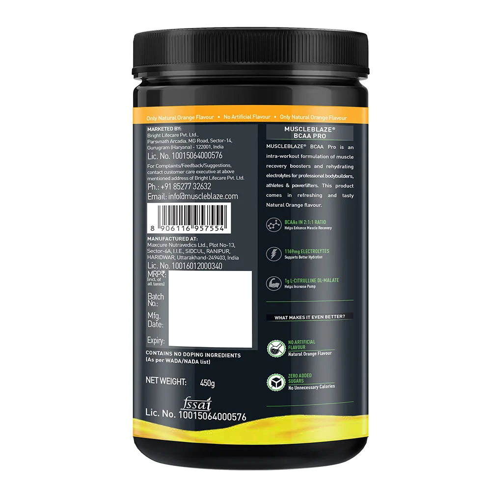 - With Zero added sugar, MuscleBlaze® BCAA Pro Blue Cola helps you get the most out of your workout with no unwanted calories