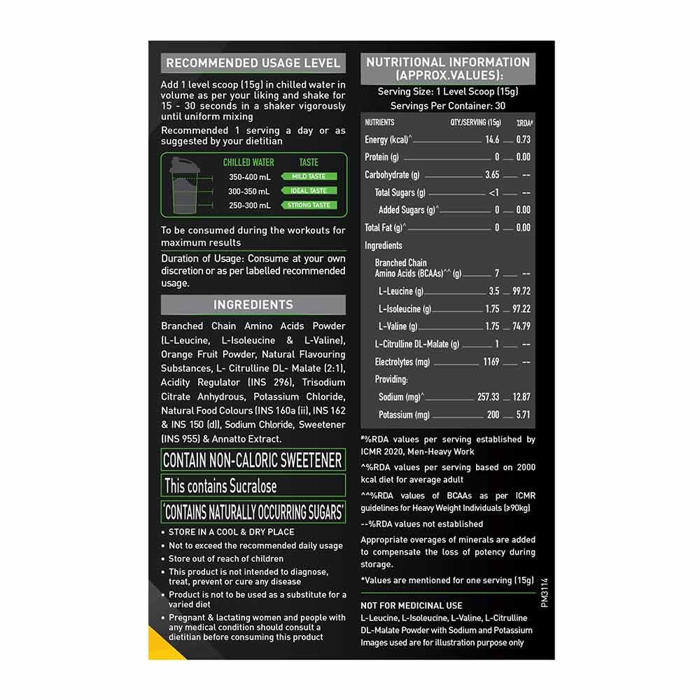 BCAAs can reach the muscles directly bypassing the gut by virtue of their structure. Due to this faster action, they prevent catabolism and increase the energy level during the workouts. BCAAs support muscle protein synthesis and help with faster muscle recovery. Electrolytes in this intra workout supplement reduce dehydration during the workouts and keep you brimming with energy.