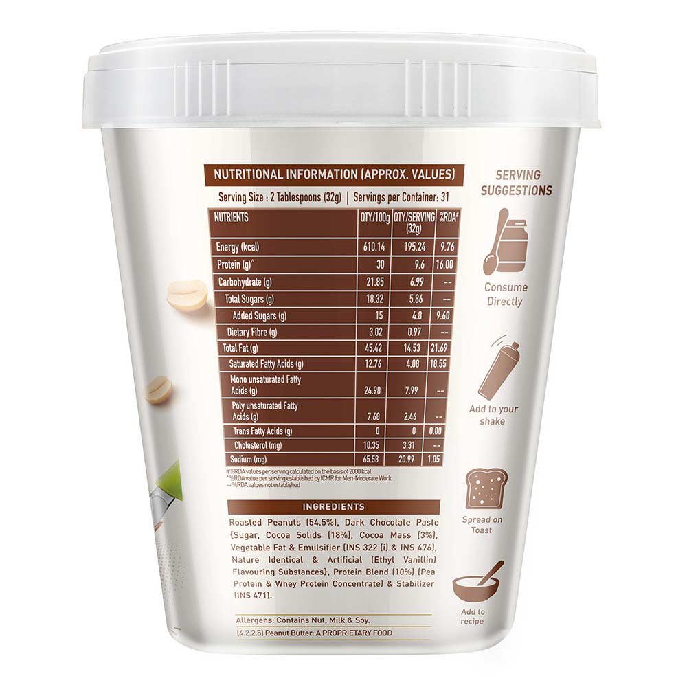 - A protein-rich spread: This deliciously smooth spread offers you 27g protein which is ideal for rendering your daily protein needs. It is enriched with premium quality protein blen, which is imported, to give you the finest quality nutrition. This spread can make your every day a protein-day.