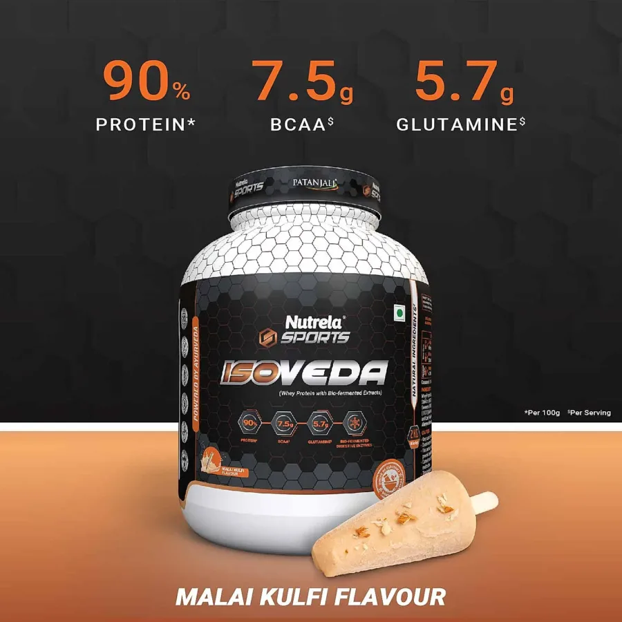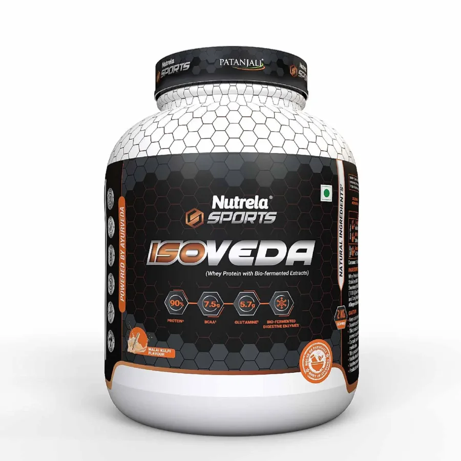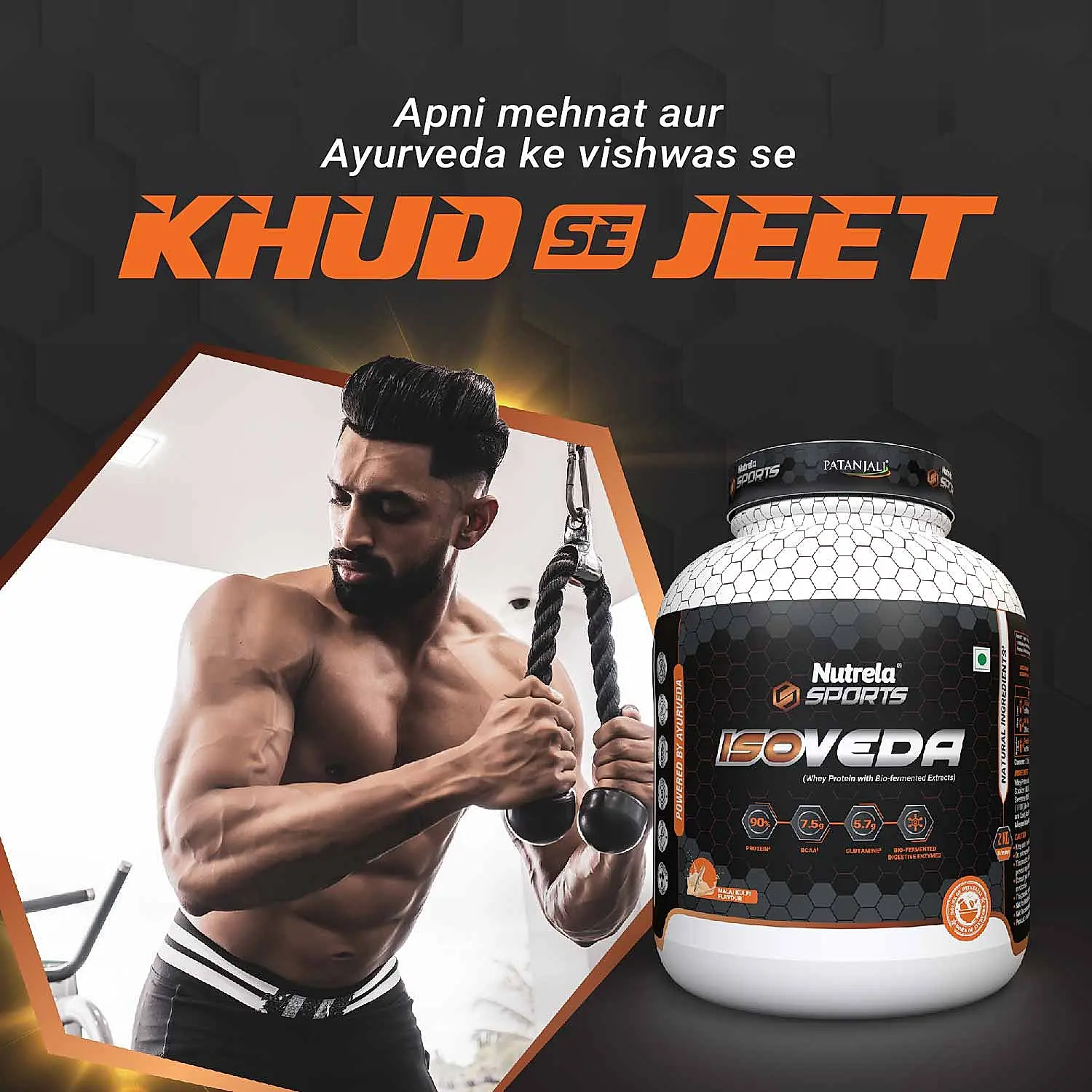 Patanjali Nutrela Isoveda is a premium, ultra filtered, easy to absorb premium blend of whey protein isolate and whey protien hydrolysate with biofermented enzymes