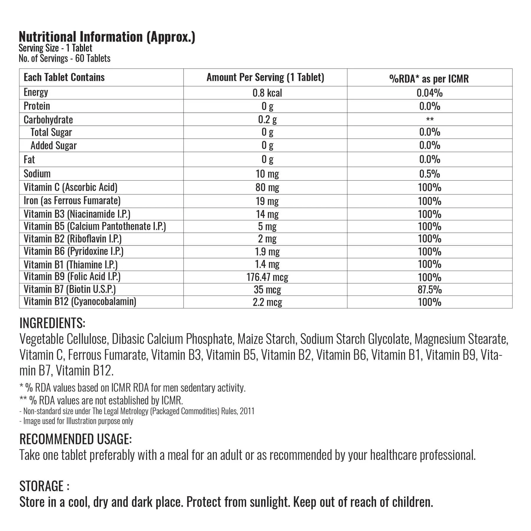 Though Iron is ideally absorbed best when the stomach is empty, iron supplements can cause vomiting, nausea and diarrhoea in many people.  Take 1-2 tablets in a day along with your meal to avoid this problem.