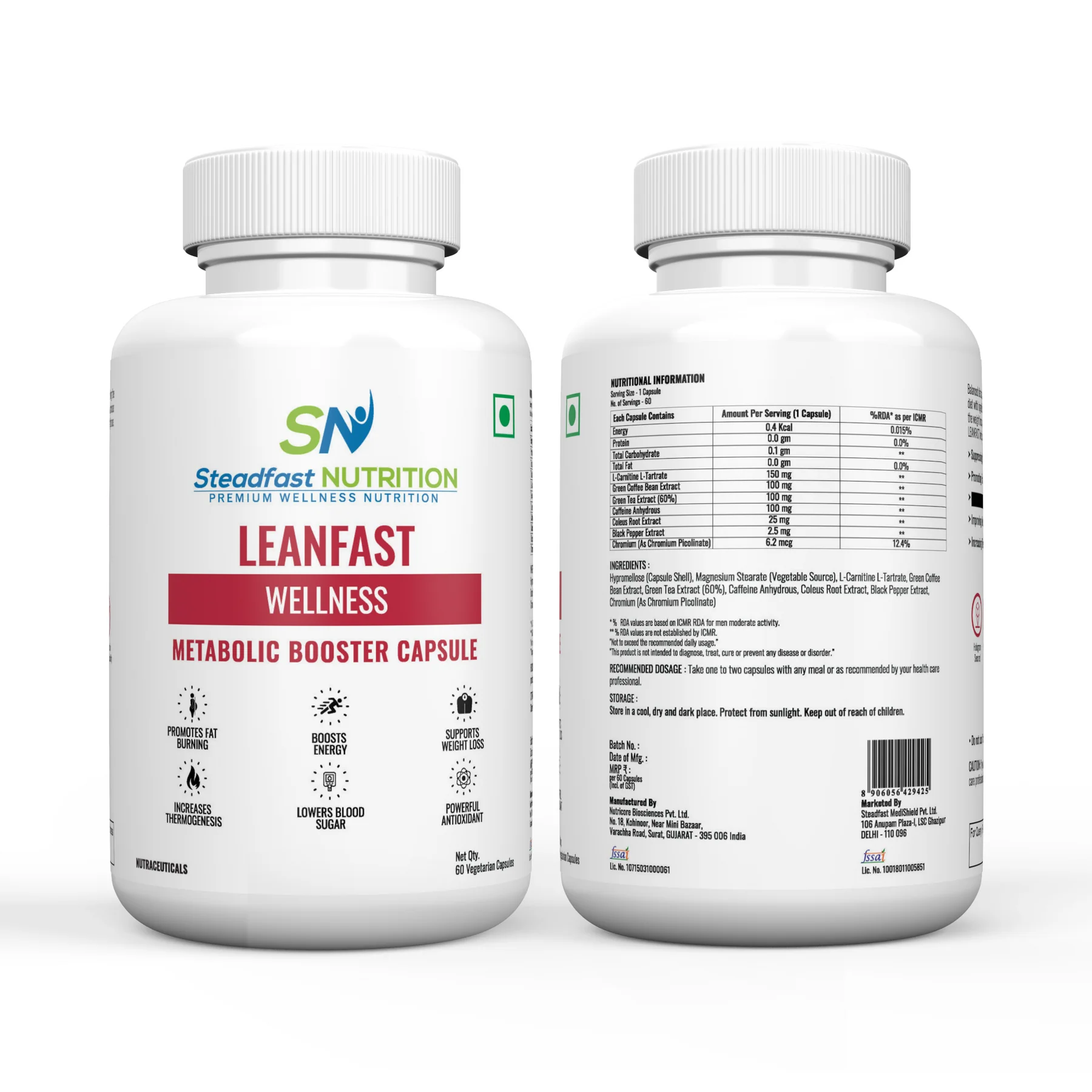 Steadfast Nutrition’s LeanFast is the perfect supplement for athletes who want to burn calories and individuals aiming at losing excess fat. A tablet of LeanFast provides L-Carnitine L-Tartrate, Green Coffee Bean Extract, Green Tea Extract, Caffeine Anhydrous, Coleus Extract, Black Pepper Extract, and Chromium that help in weight loss by promoting fat oxidation and regulating glucose metabolism, which improves the body’s overall metabolism and helps burn calories.
