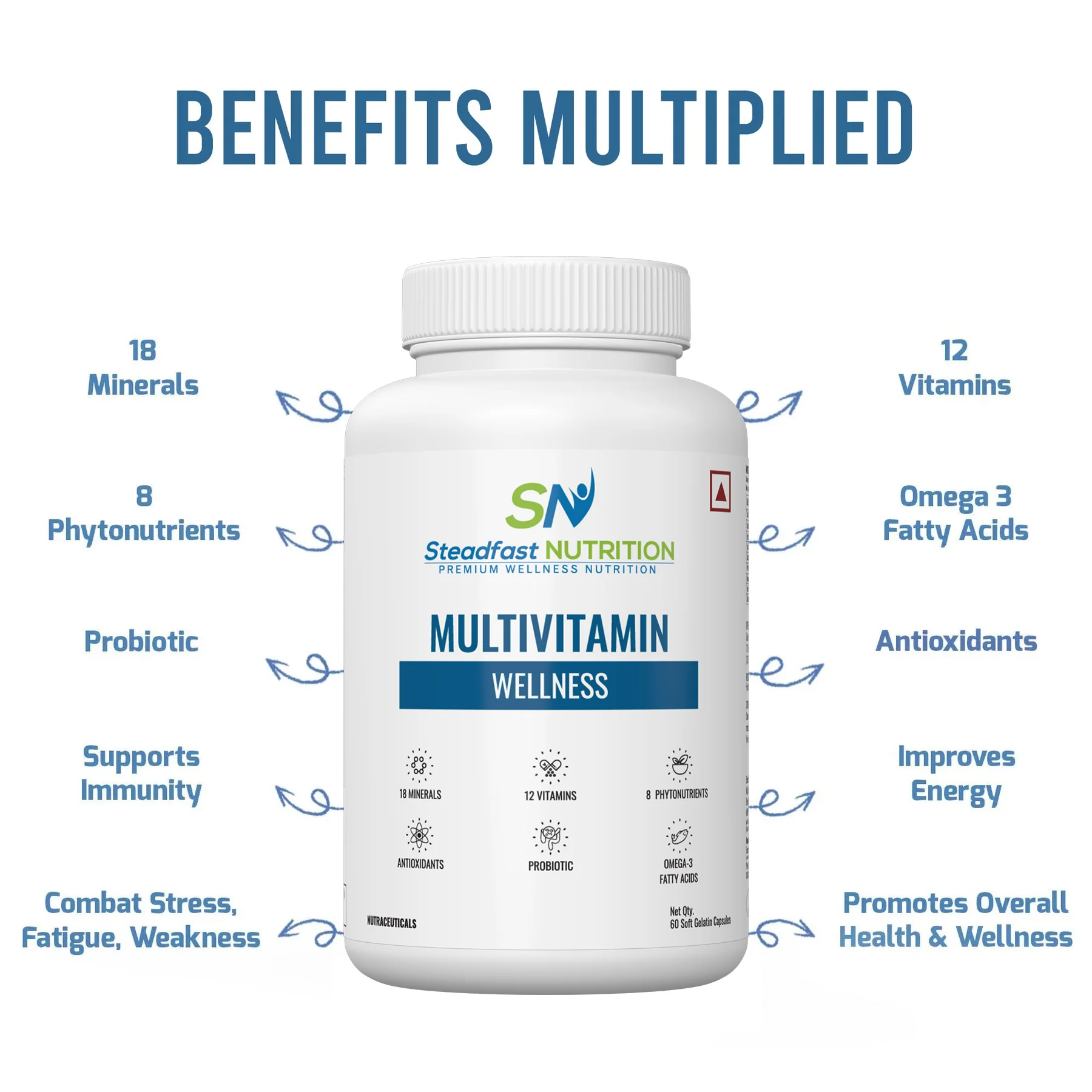 Steadfast Nutrition’s MULTIVITAMIN is an exclusive formulation that has been designed to meet the daily nutrient needs of all individuals. If you want to avoid micronutrient deficiencies, have run out of food options to fulfil your nutritional needs, or want to maintain your nutritional status, Steadfast Multivitamin is the one-stop solution. It is non-GMO, gluten-free and has been prepared in a GMP-certified facility. Besides providing essential vitamins and minerals, Steadfast Nutrition’s MULTIVITAMIN also imparts the benefits of natural herbs, omega-3 fatty acids, phytonutrients, and antioxidants.